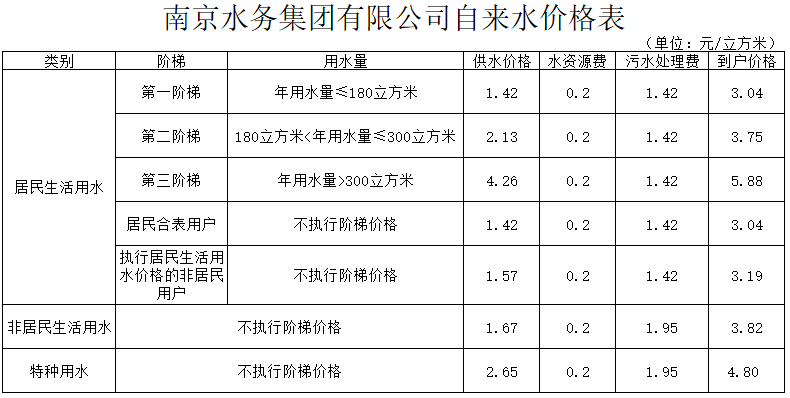 (因自來水水費收費標準可能調(diào)整,南京自來水水費價格以官方發(fā)布為準,本站采編的自來水價格僅供參考。)