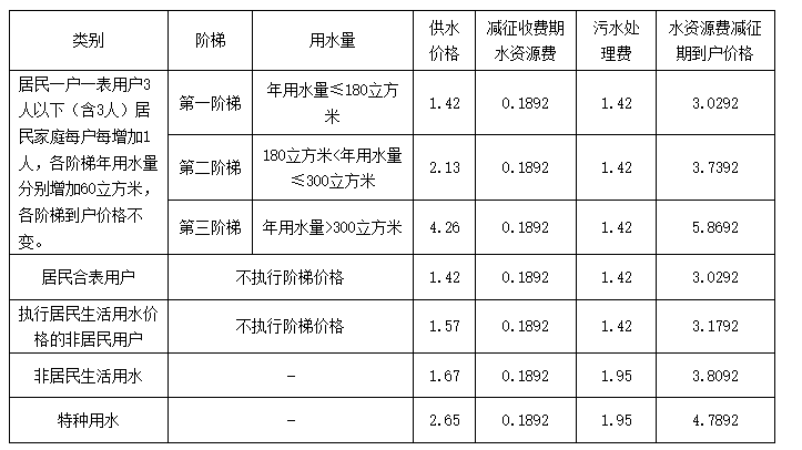 居民生活用水階梯價格執(zhí)行《關(guān)于完善居民生活用水階梯價格制度的通知》(寧價工【2015】312號)。3人以下(含3人)的居民家庭執(zhí)行以上標準。3人以上的居民家庭,每戶每增加1人,各階梯年用水量分別增加60立方米,各階梯到戶價格不變。由用戶向供水企業(yè)提出申請,供水企業(yè)根據(jù)用戶提供的居民戶口簿或居住證等證明審核后確認。