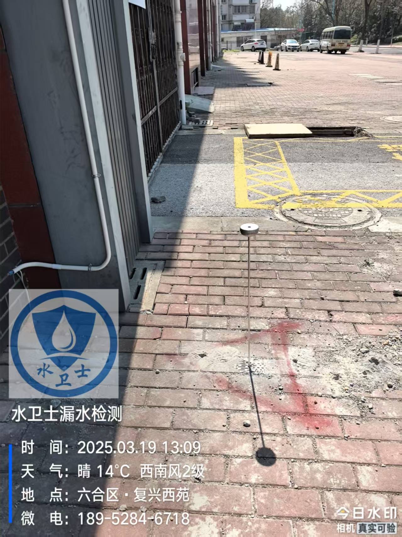 2025年3月19日,受消防維保單位委托,我司對六合區(qū)復(fù)興西苑小區(qū)進(jìn)行消防管道漏水檢測。據(jù)客戶介紹,該小區(qū)消防管網(wǎng)為鍍鋅鋼管,埋深1米。本次共計(jì)檢測漏水點(diǎn)1處,為管道法蘭接頭處漏水。